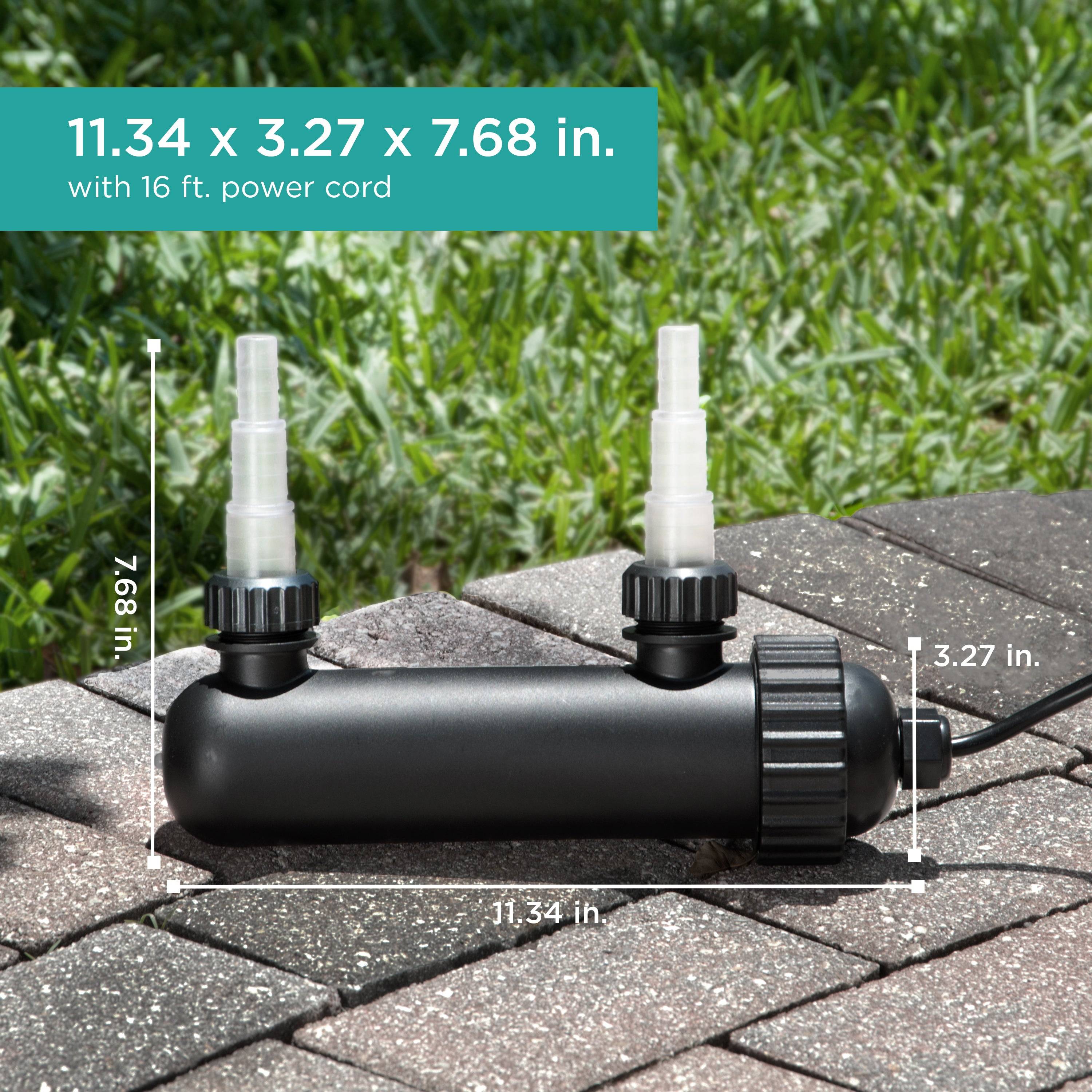 - Enhanced safety features: Blue indicator light and clear adaptors allow you to see that the unit is properly functioning in your pond.Â