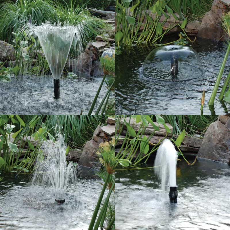 Nozzle kits offer you a variety of water displays which you can adjust to varying heights depending on the power of your pump.