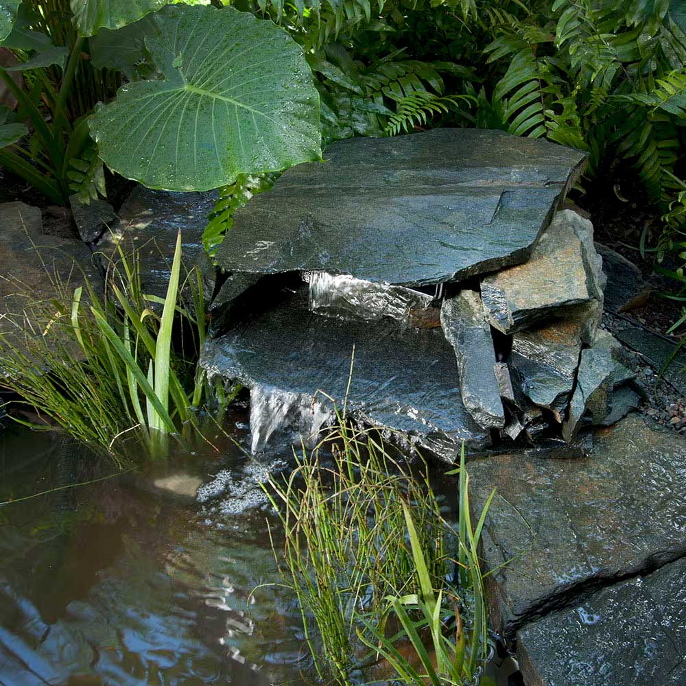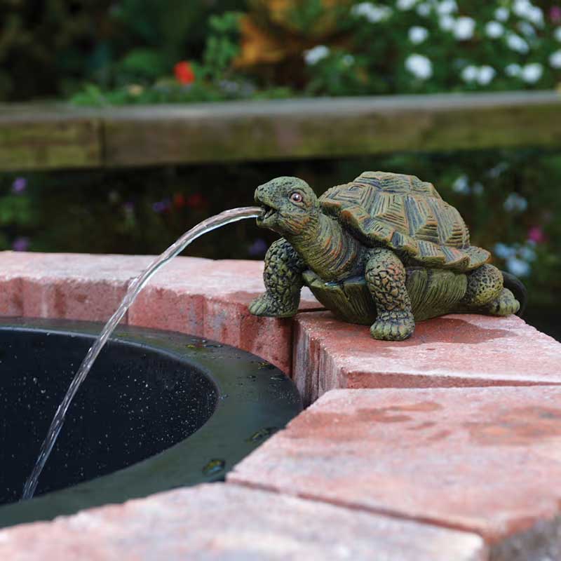 Spitters are small statues that spit or squirt a stream of water into the pond. They are usually placed on or near the edge of the pond.