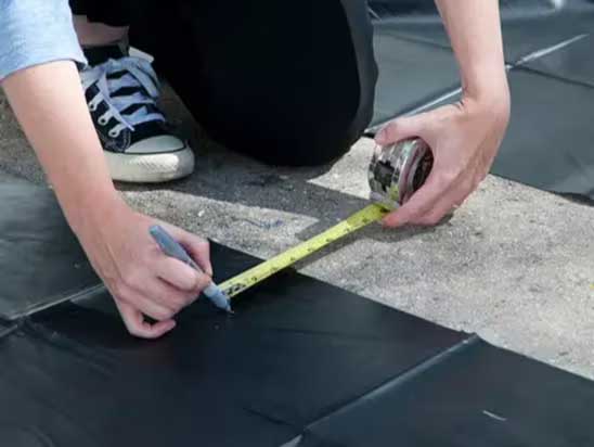Align the seaming tape on bottom liner where you have made the marks. Unroll the tape along the entire length and stick the seaming tape to the bottom liner.