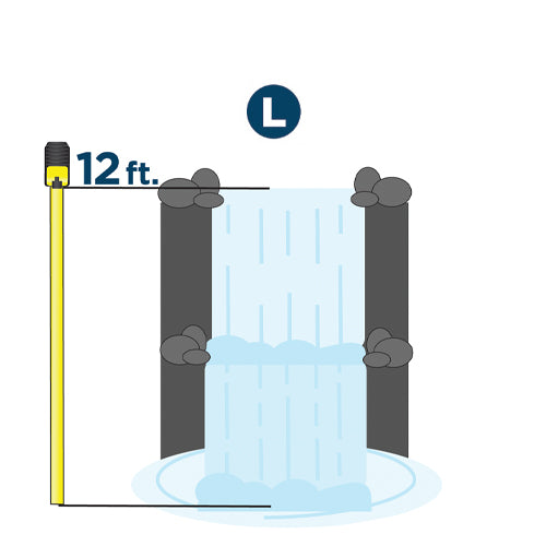 | Large | 12 ft. | 3,600 GPH Waterfall Pump | 10.5 x 4.9 x 6 in. |
