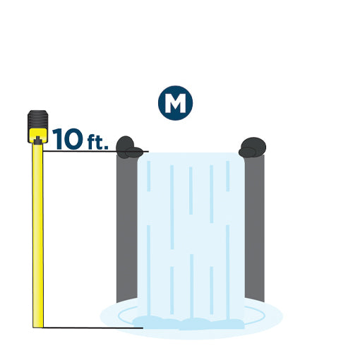 - Measure the height from the TOP of the pond water (don't measure the depth of the pond, only from the surface of the pond) to the top of the waterfall spillway. For every foot of height, the water must be pushed from the top of the pond water, we calculate one foot of height.