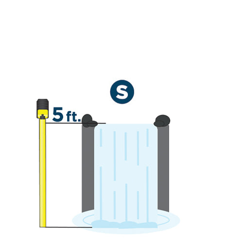 IMPORTANT! When shopping for a waterfall pump, look at the specifications chart on the packaging to determine what flow that pump will create at different lifts. In our case, you don’t want to look for packaging that says it's a 5000 GPH pump because this number is most likely at 0 ft. lift or 1 ft. lift – not the 6 ft. lift you need (according to the example). It might be only 1000 GPH or 2000 GPH at that height. The specs chart will help to confirm.